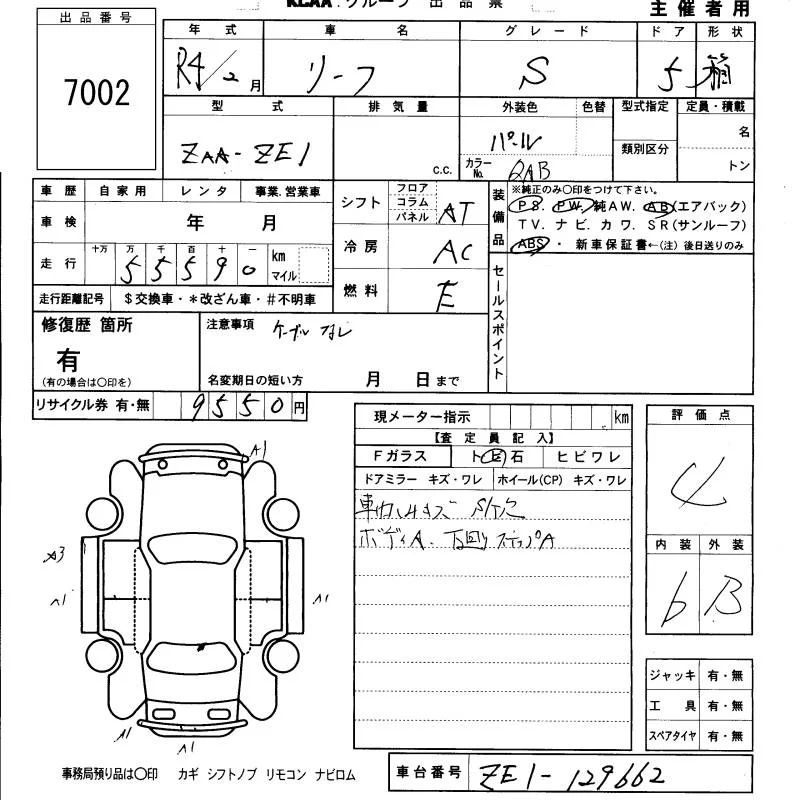 Nissan LEAF с аукциона Японии KCAA Fukuoka лот № 7002