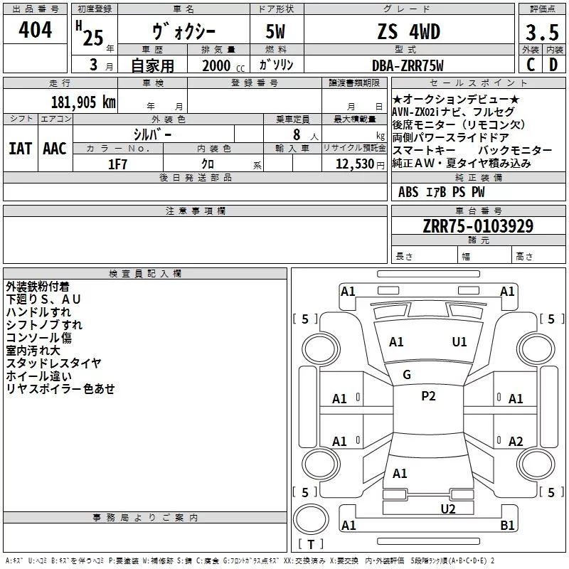 Toyota VOXY с аукциона Японии TAA Chubu лот № 404