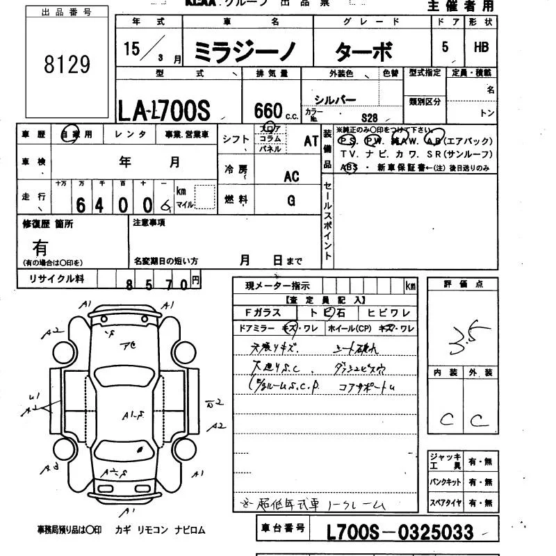 Daihatsu MIRA с аукциона Японии KCAA Fukuoka лот № 8129