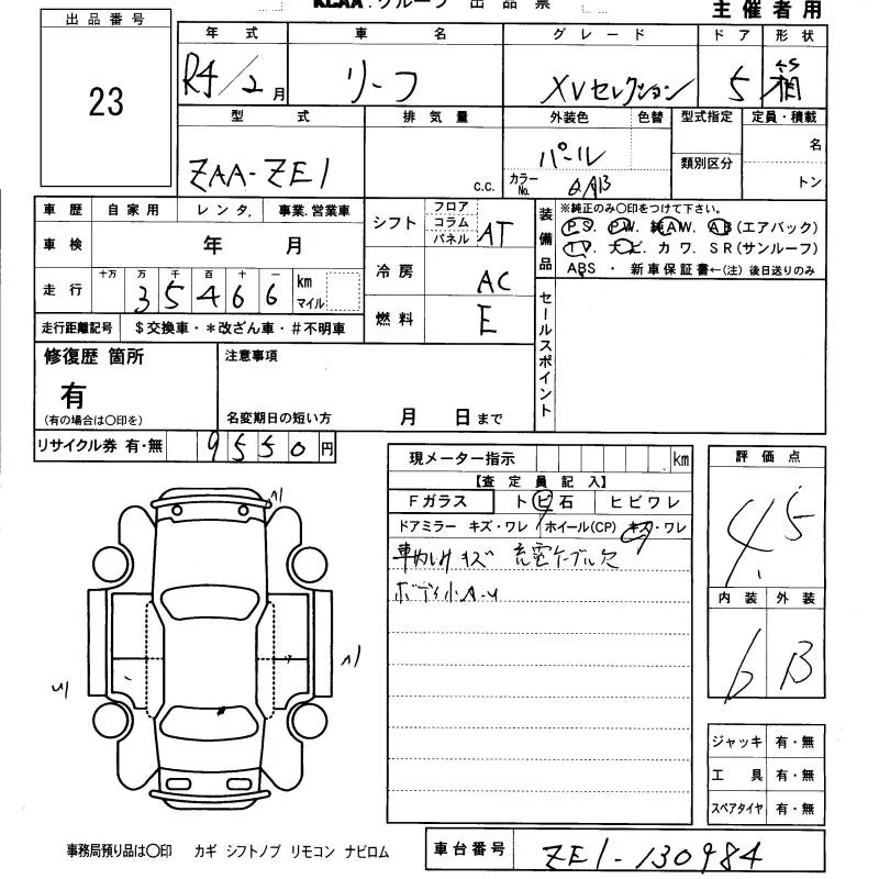 Nissan LEAF с аукциона Японии KCAA Fukuoka лот № 23