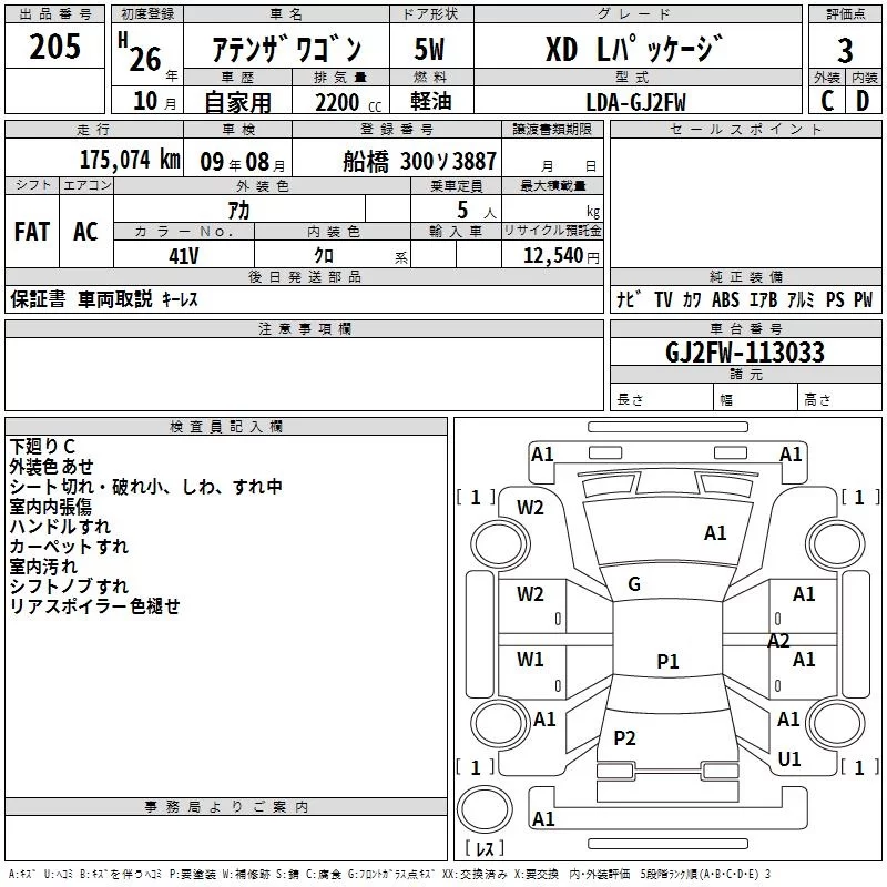 Mazda ATENZA WAGON с аукциона Японии TAA Kanto лот № 205
