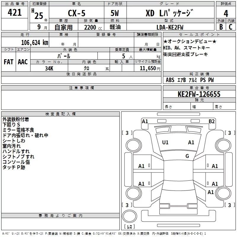 Mazda CX-5 с аукциона Японии TAA Chubu лот № 421