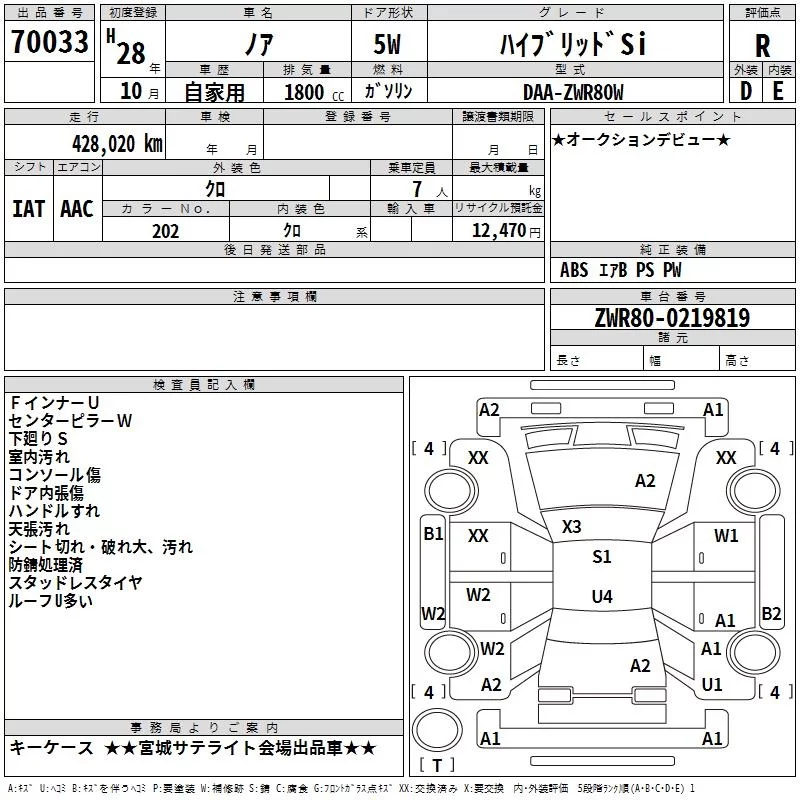 Toyota NOAH с аукциона Японии TAA Tohoku лот № 70033