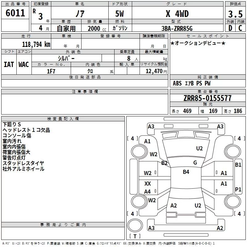 Toyota NOAH с аукциона Японии TAA Tohoku лот № 6011