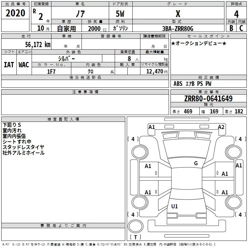 Toyota NOAH с аукциона Японии TAA Tohoku лот № 2020