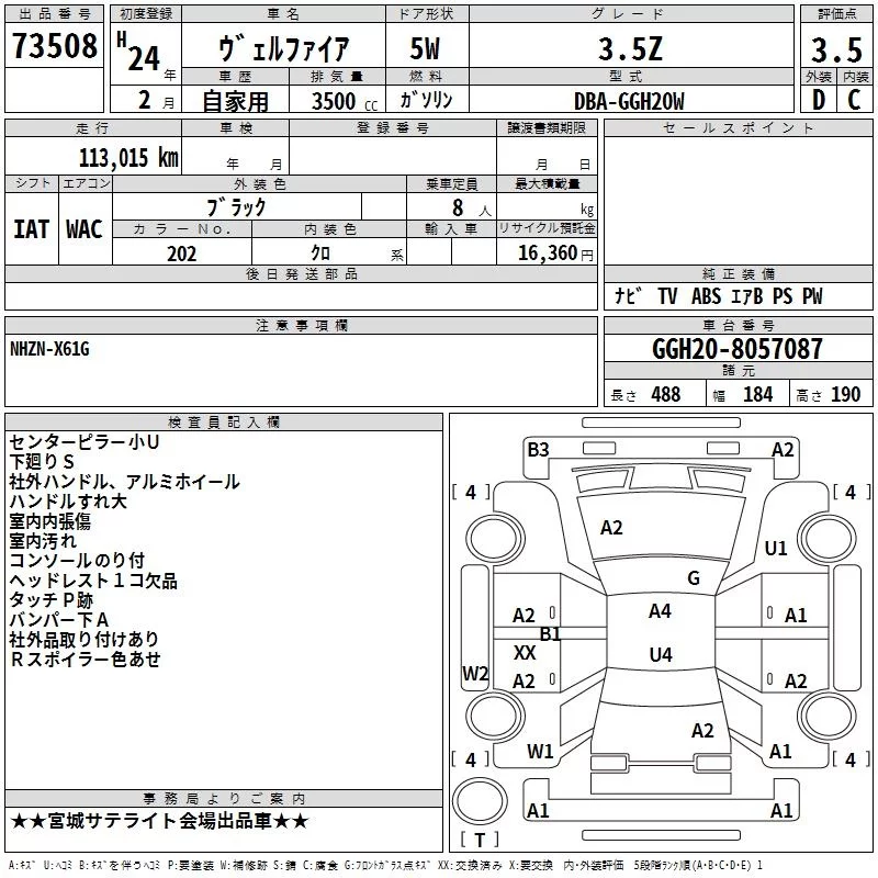 Toyota VELLFIRE с аукциона Японии TAA Tohoku лот № 73508
