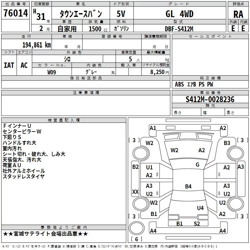 Toyota TOWN ACE VAN с аукциона Японии TAA Tohoku лот № 76014
