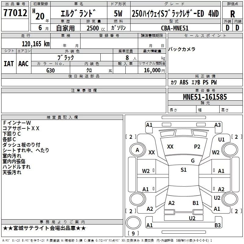 Nissan ELGRAND с аукциона Японии TAA Tohoku лот № 77012