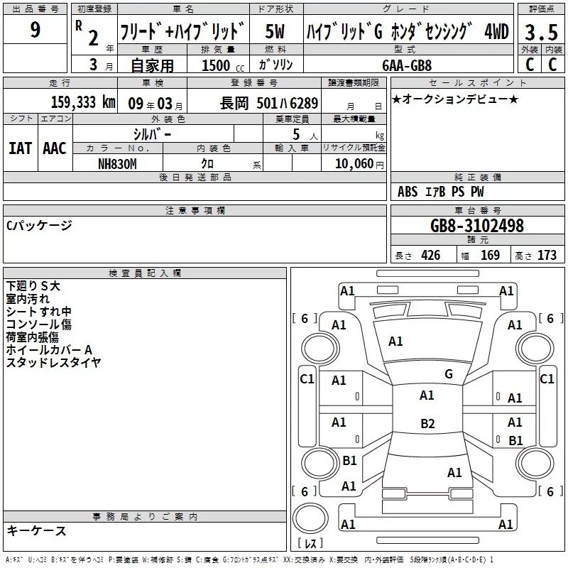 Honda FREED с аукциона Японии TAA Tohoku лот № 9