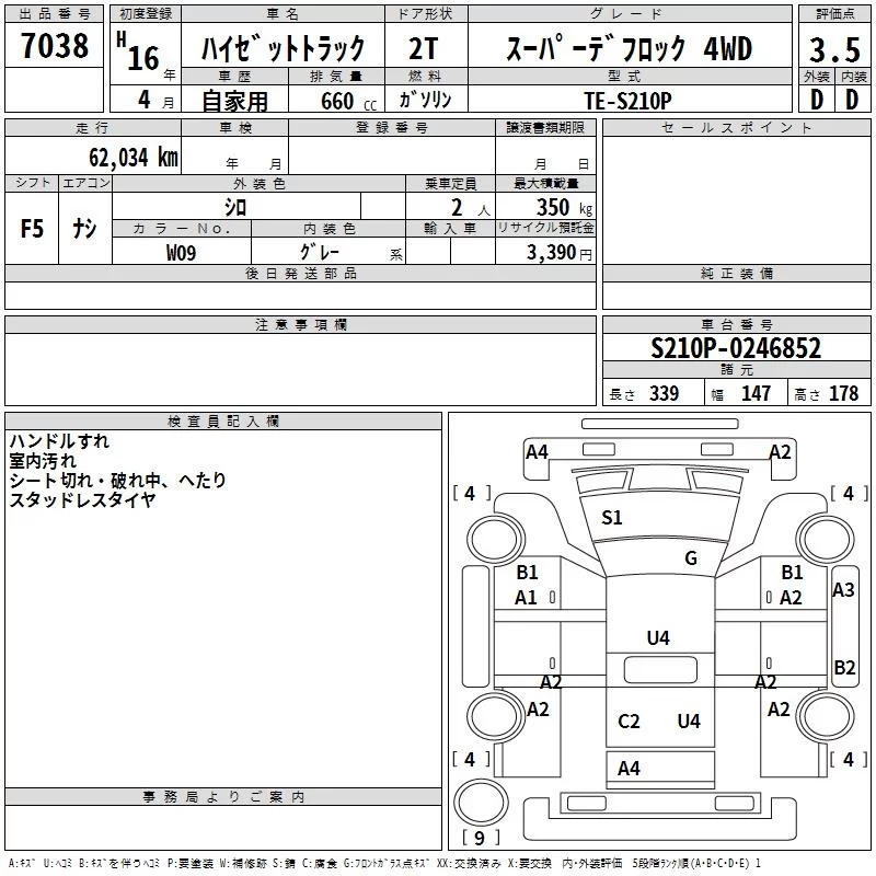 Daihatsu HIJET TRUCK с аукциона Японии TAA Tohoku лот № 7038