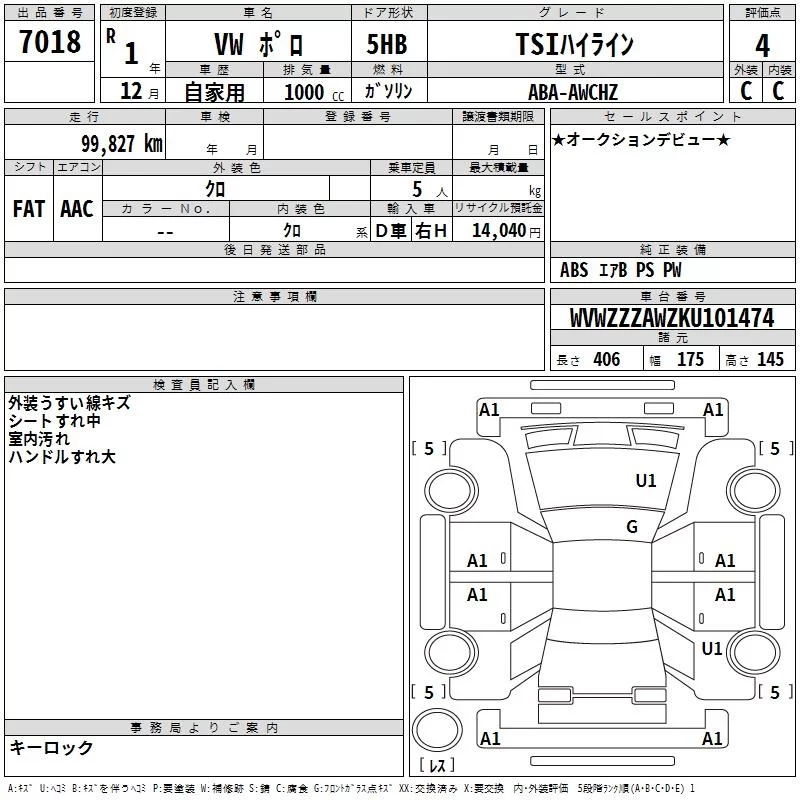 Volkswagen Polo с аукциона Японии TAA Tohoku лот № 7018