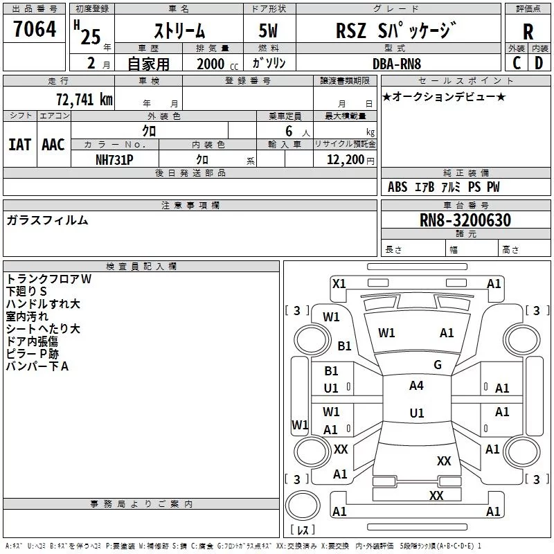 Honda STREAM с аукциона Японии TAA Tohoku лот № 7064