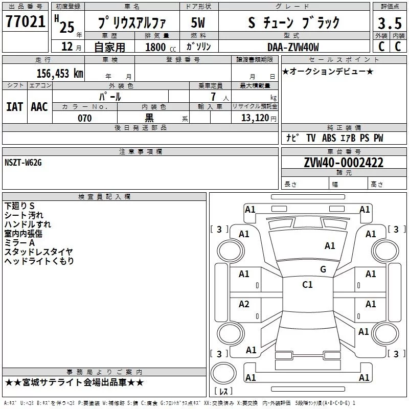 Toyota PRIUS ALPHA с аукциона Японии TAA Tohoku лот № 77021