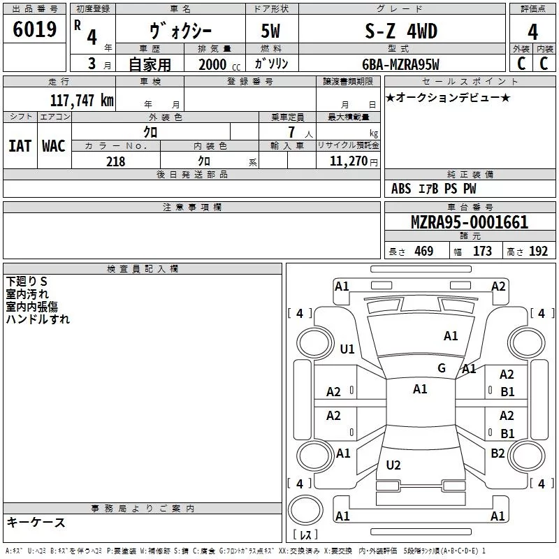 Toyota VOXY с аукциона Японии TAA Tohoku лот № 6019