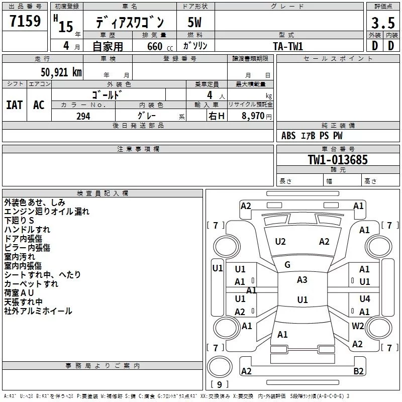 Subaru GOLF ALLTRACK с аукциона Японии TAA Tohoku лот № 7159