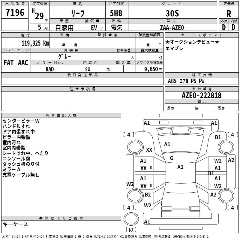 Nissan LEAF с аукциона Японии TAA Tohoku лот № 7196