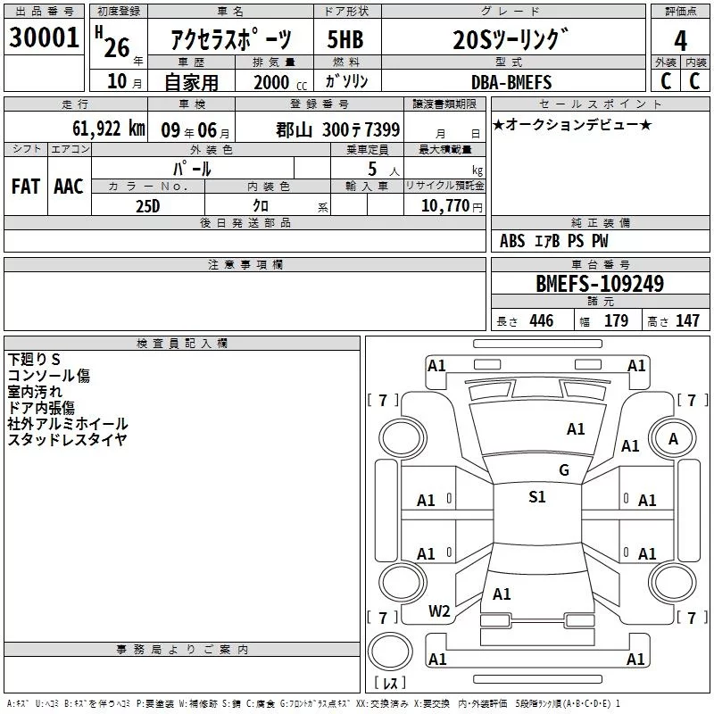 Mazda AXELA с аукциона Японии TAA Tohoku лот № 30001