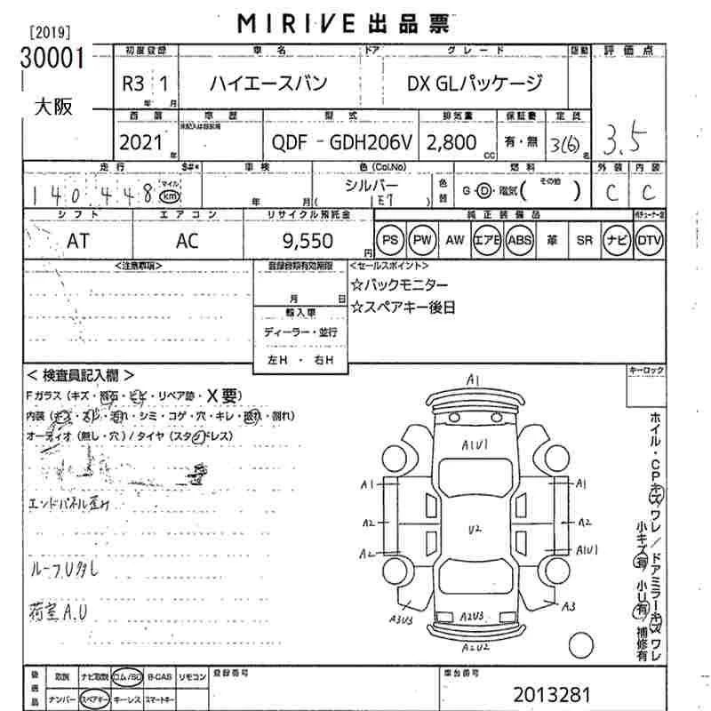 Toyota HIACE VAN с аукциона Японии MIRIVE Osaka лот № 30001