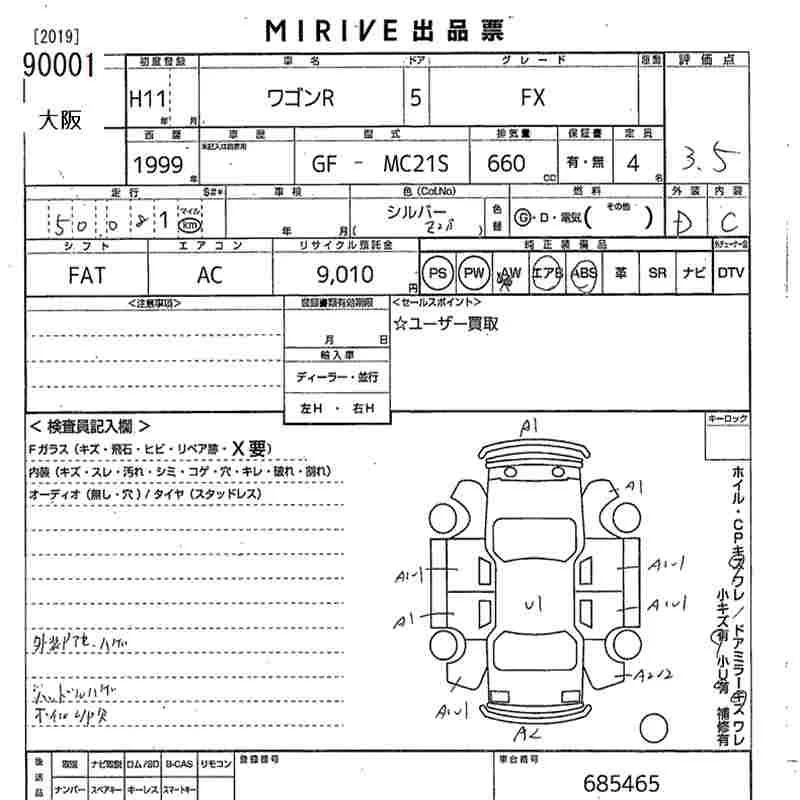 Suzuki WAGON R с аукциона Японии MIRIVE Osaka лот № 90001
