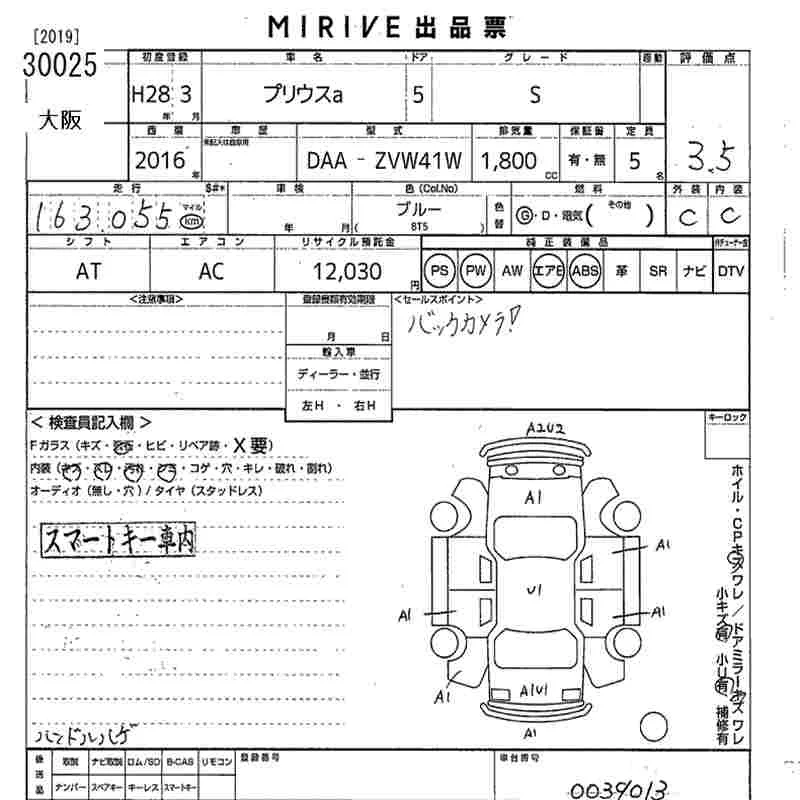 Toyota PRIUS ALPHA с аукциона Японии MIRIVE Osaka лот № 30025