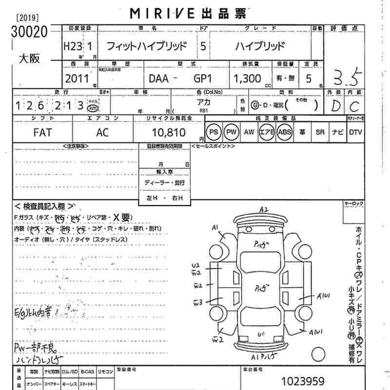 Honda FIT с аукциона Японии MIRIVE Osaka лот № 30020