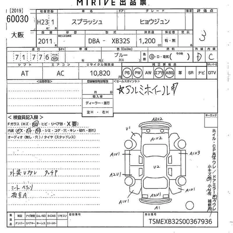 Suzuki SPLASH с аукциона Японии MIRIVE Osaka лот № 60030