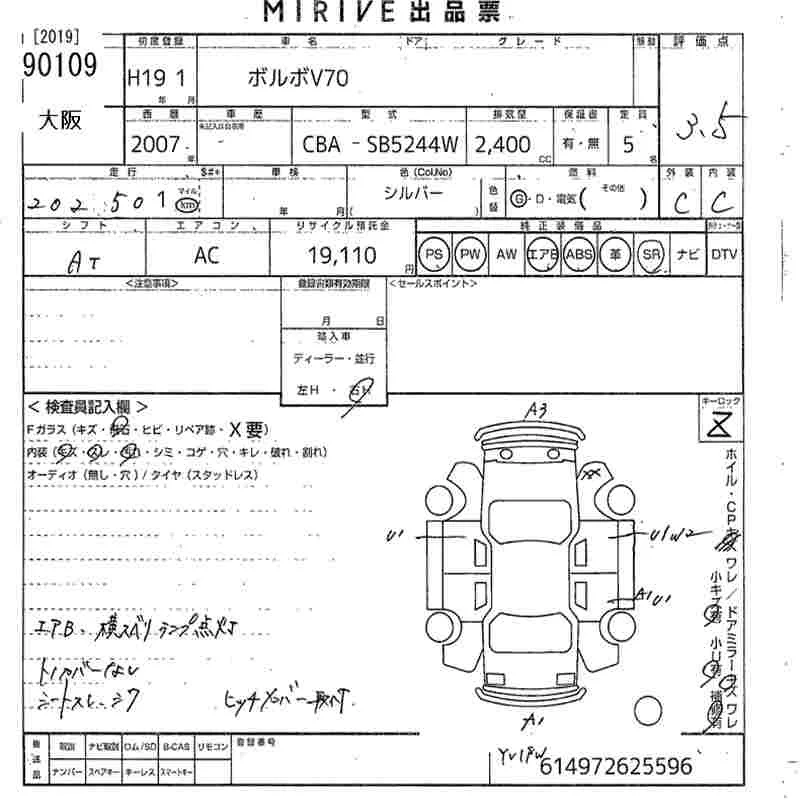 Volvo V70 с аукциона Японии MIRIVE Osaka лот № 90109