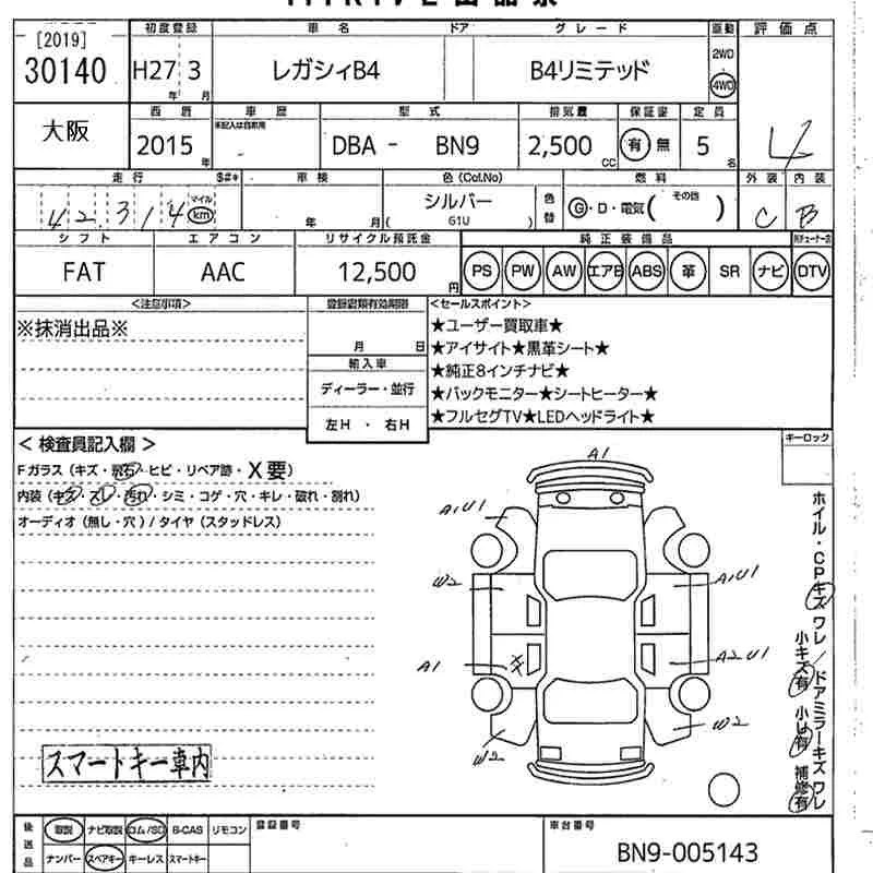 Subaru LEGACY B4 с аукциона Японии MIRIVE Osaka лот № 30140
