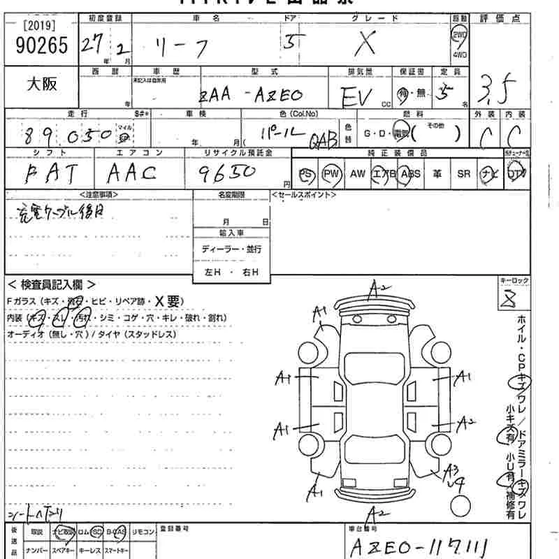 Nissan LEAF с аукциона Японии MIRIVE Osaka лот № 90265