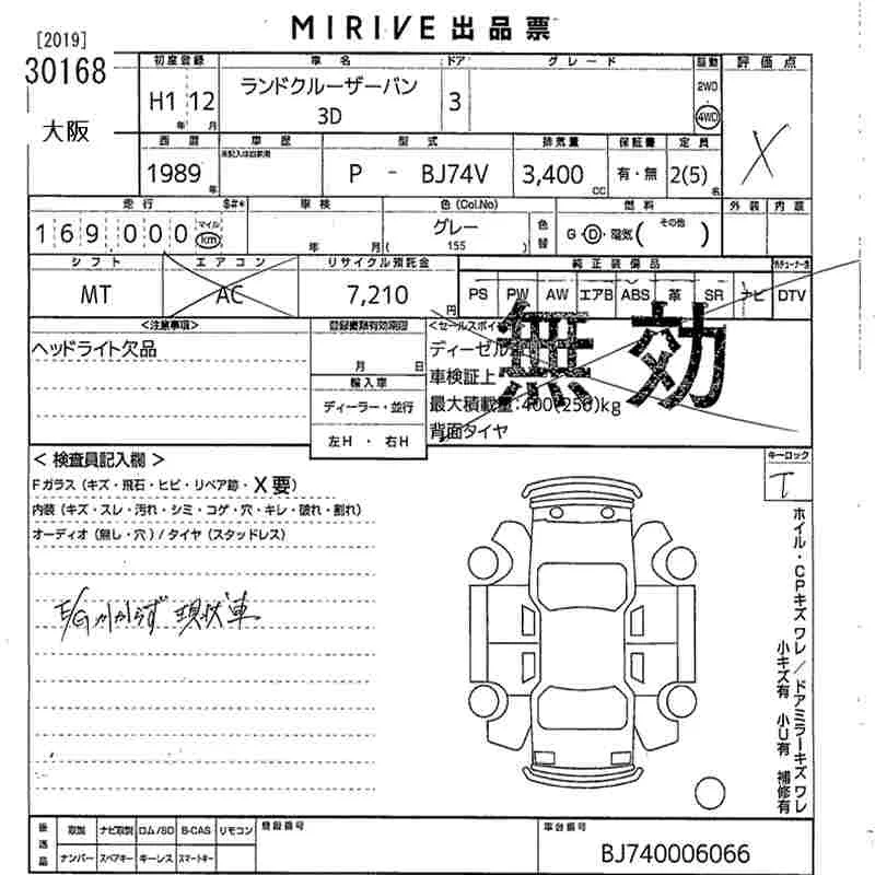 Toyota LAND CRUISER с аукциона Японии MIRIVE Osaka лот № 30168