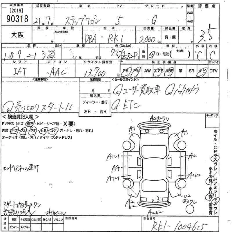 Honda STEP WAGON с аукциона Японии MIRIVE Osaka лот № 90318