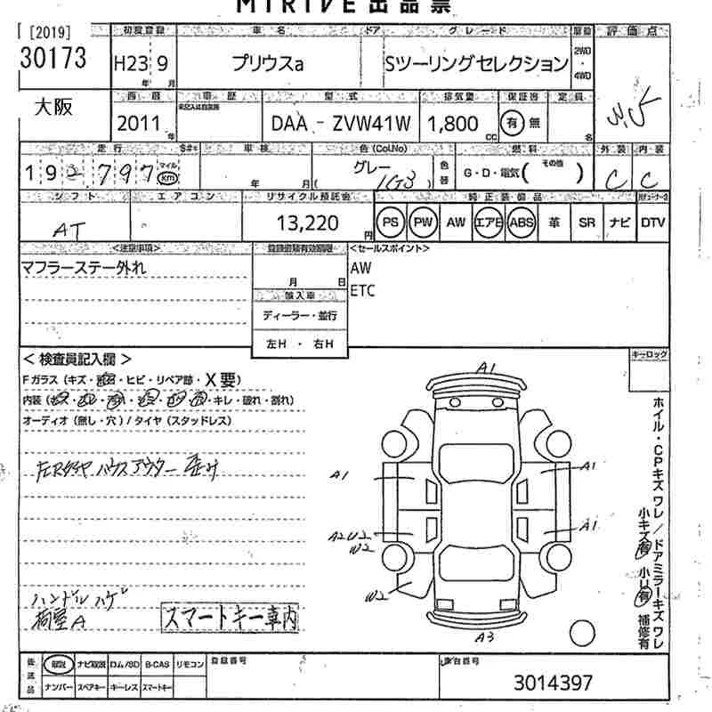 Toyota PRIUS ALPHA с аукциона Японии MIRIVE Osaka лот № 30173