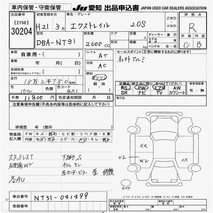 Nissan X-TRAIL с аукциона Японии JU Aichi лот № 30204