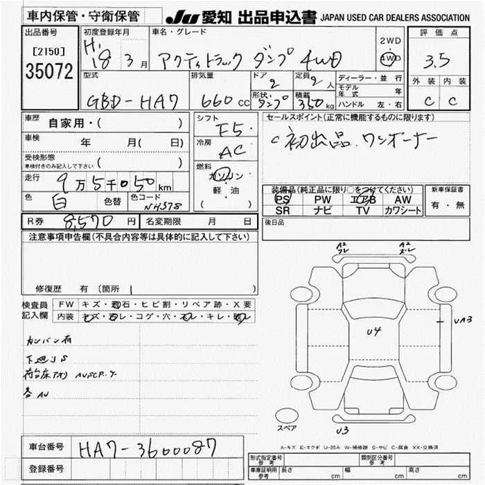 Honda ACTY TRUCK с аукциона Японии JU Aichi лот № 35072