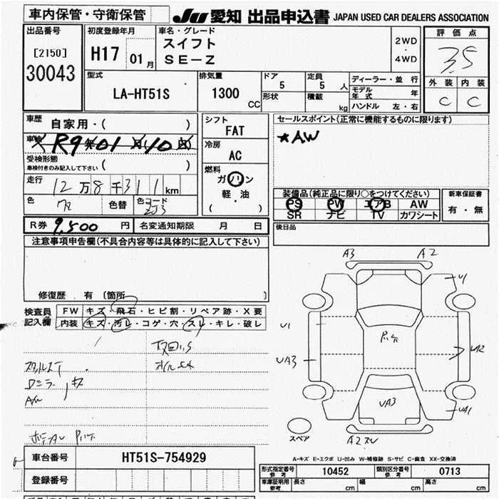 Suzuki SWIFT с аукциона Японии JU Aichi лот № 30043