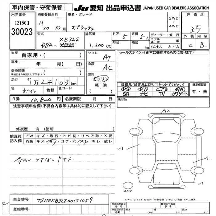 Suzuki SPLASH с аукциона Японии JU Aichi лот № 30023
