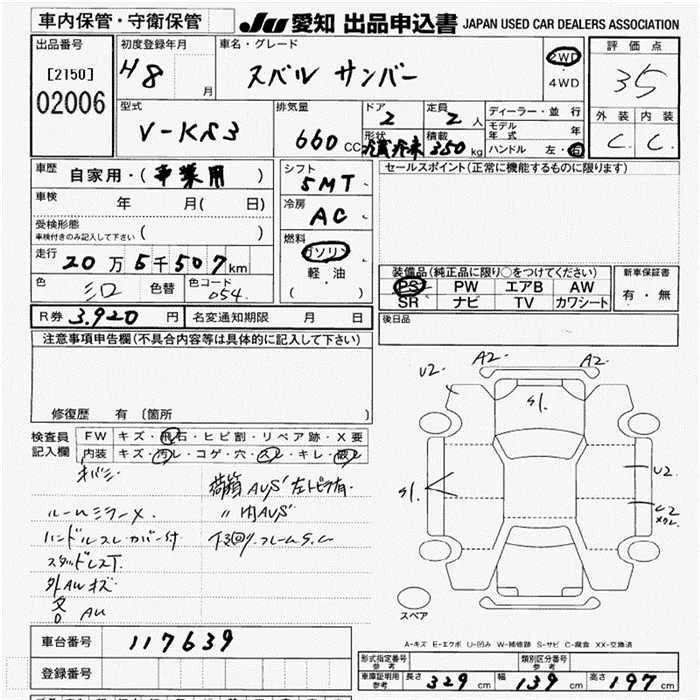 Subaru SAMBAR с аукциона Японии JU Aichi лот № 2006