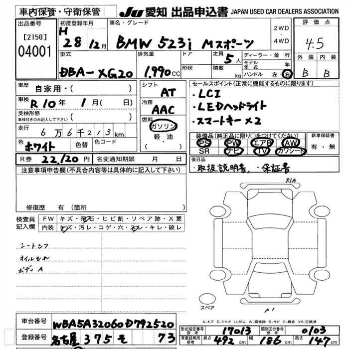 BMW 5-Series с аукциона Японии JU Aichi лот № 4001