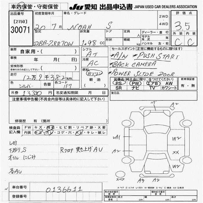 Toyota NOAH с аукциона Японии JU Aichi лот № 30071