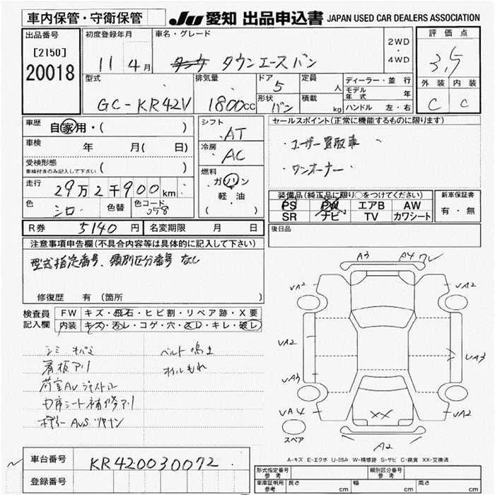 Toyota TOWN ACE VAN с аукциона Японии JU Aichi лот № 20018