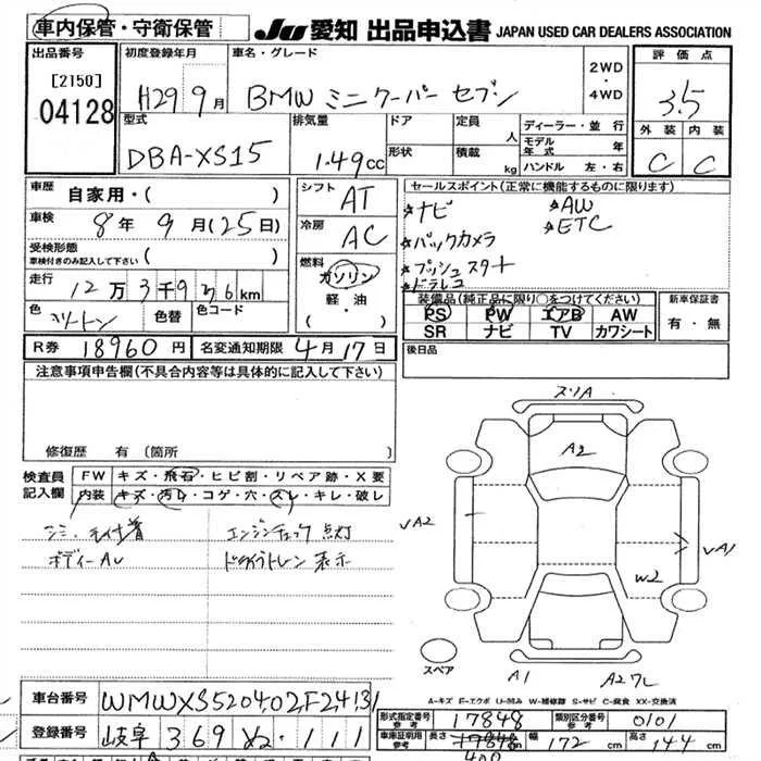 BMW MINI с аукциона Японии JU Aichi лот № 4128