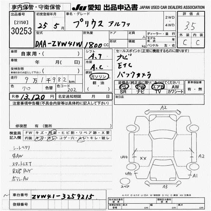 Toyota PRIUS ALPHA с аукциона Японии JU Aichi лот № 30253