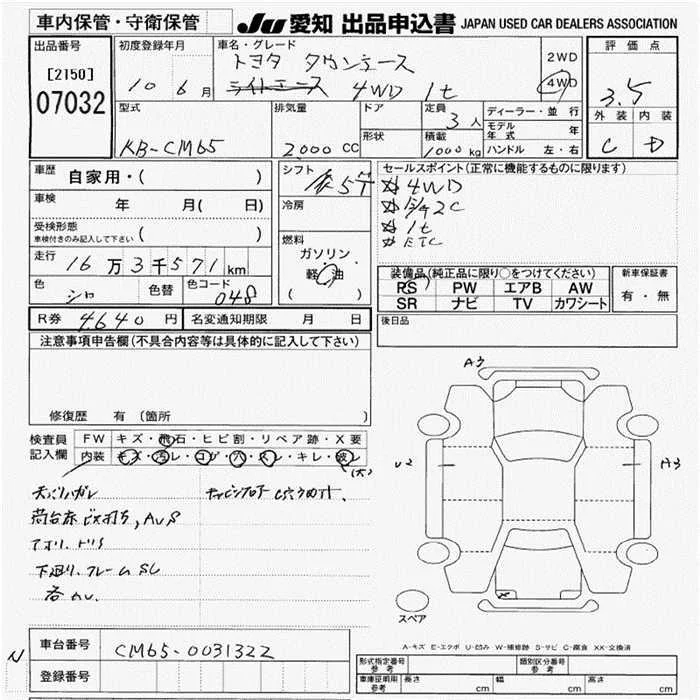 Toyota TOWN ACE TRUCK с аукциона Японии JU Aichi лот № 7032