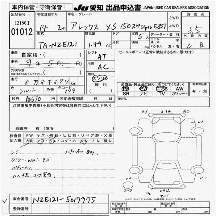 Toyota ALLEX с аукциона Японии JU Aichi лот № 1012