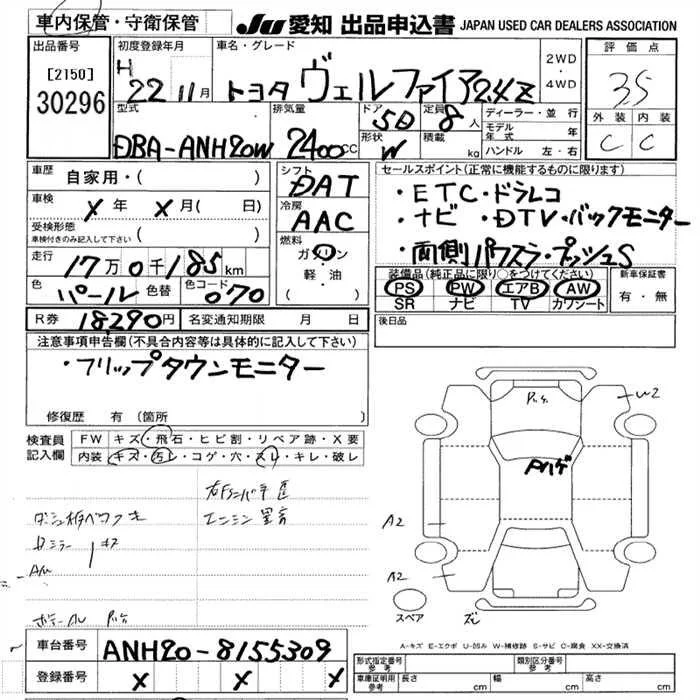 Toyota VELLFIRE с аукциона Японии JU Aichi лот № 30296