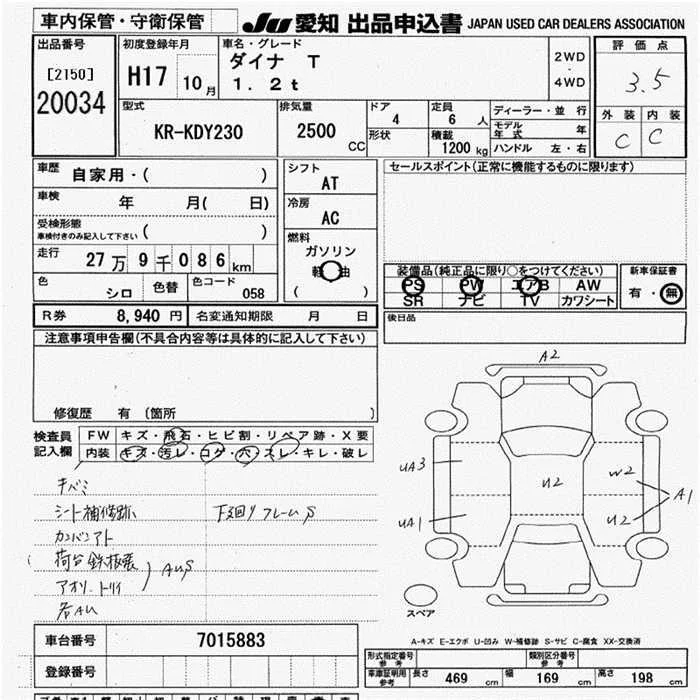 Toyota DYNA с аукциона Японии JU Aichi лот № 20034