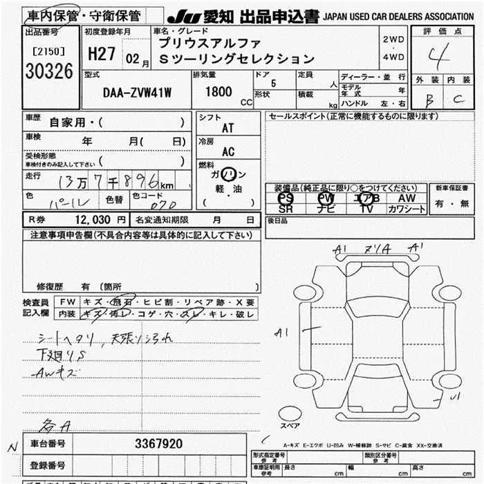 Toyota PRIUS ALPHA с аукциона Японии JU Aichi лот № 30326