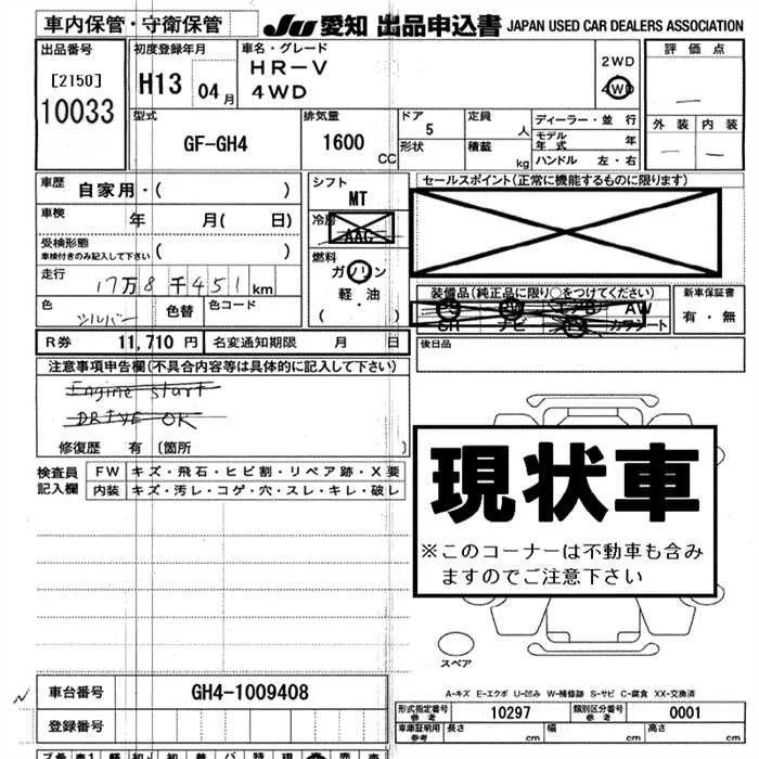 Honda HR-V с аукциона Японии JU Aichi лот № 10033
