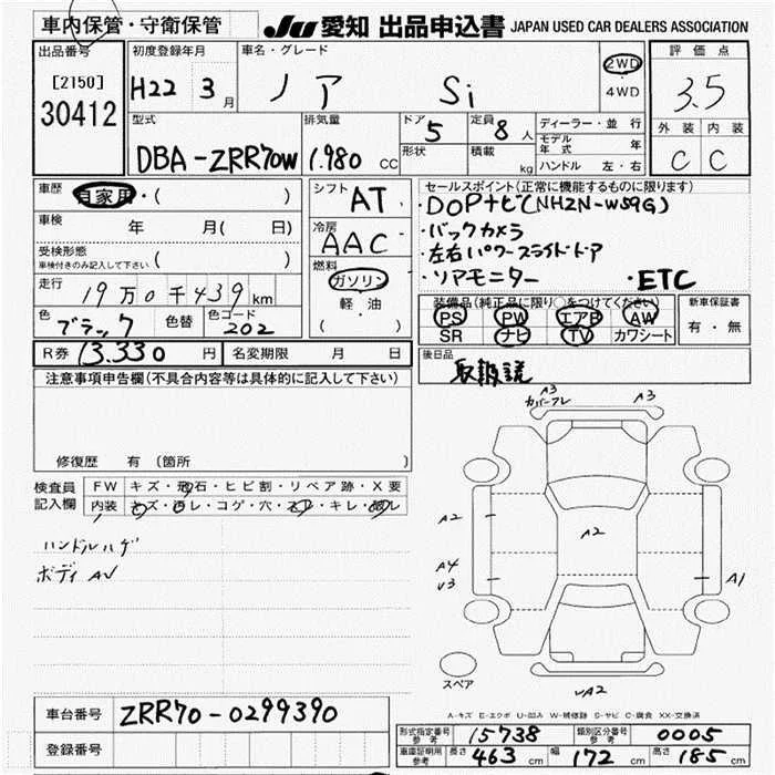 Toyota NOAH с аукциона Японии JU Aichi лот № 30412