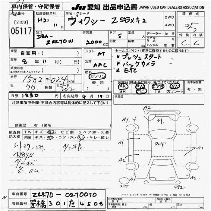 Toyota VOXY с аукциона Японии JU Aichi лот № 5117